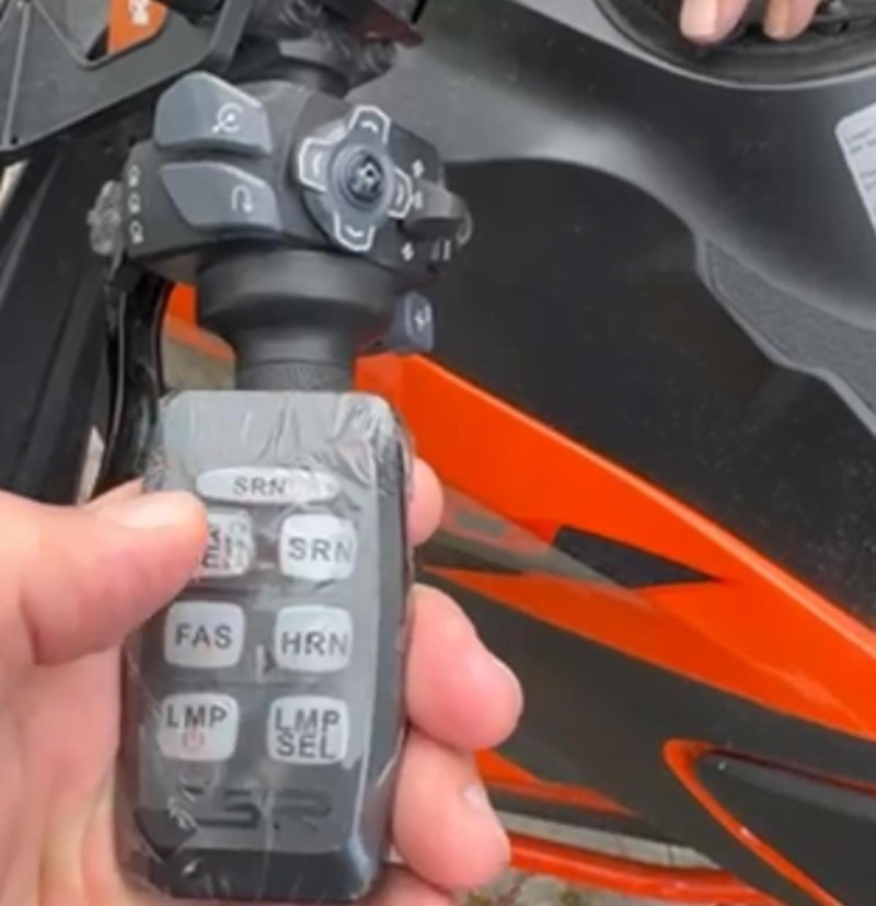 Gerçekleştirilen kontrollerde, motosiklette kumanda ile çalışan polis sireni tertibatı bulunduğu tespit edildi.