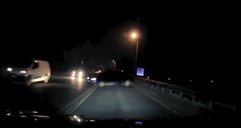 Bu sırada karşı yönden gelen bir otomobil sürücüsü kazayla burun buruna kaldı.