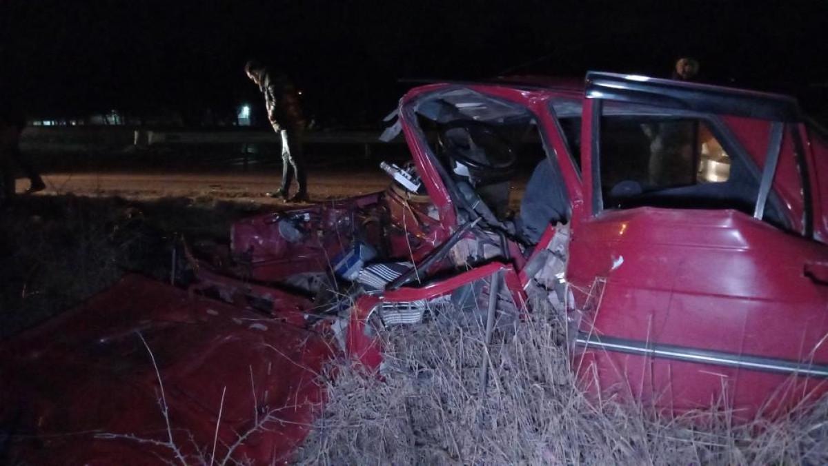 Motoru yerinden fırlayan ve hurda yığınına dönen araçtaki sürücü ile Y.P ve M.Ö. isimli genç yaralandı.