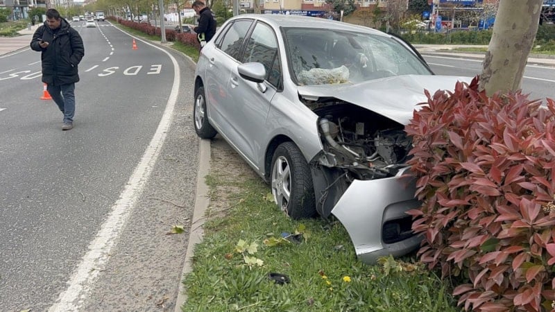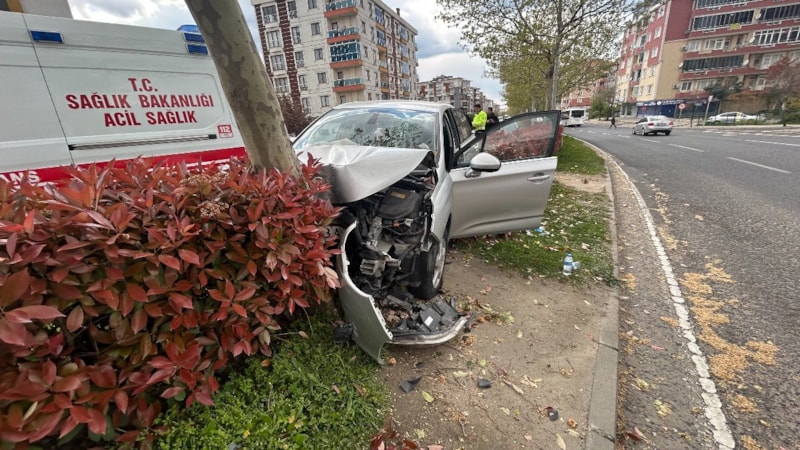 Tekirdağ'ın Çorlu ilçesinde G.B. idaresindeki Bulgaristan plakalı araç, sürücüsünün direksiyon hakimiyetini kaybetmesi sonucu orta refüje çıkarak ağaca çarptı.