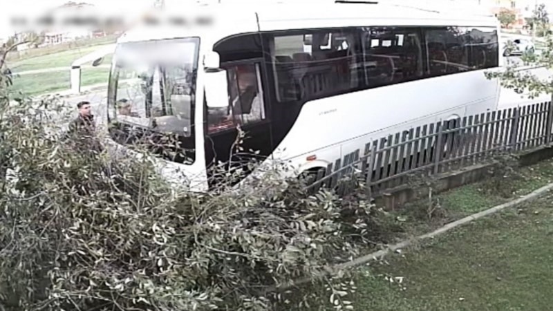 Tekirdağ'da yoldan çıkan servis minibüsünün ağaca çarptığı anlar güvenlik kamerasına yansıdı. Kazada minibüs şoförü yaralandı.