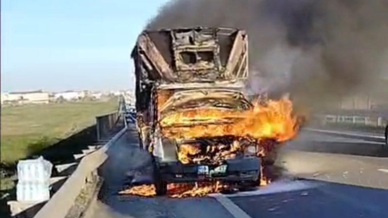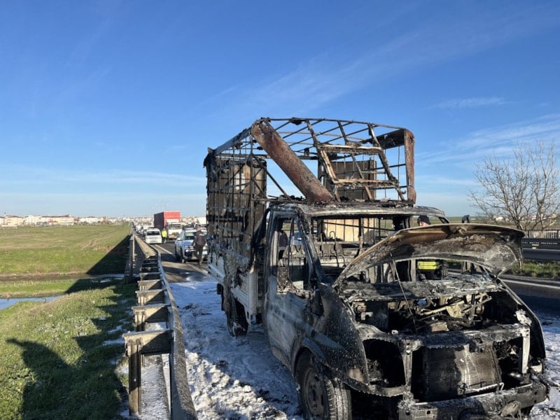 Çorlu-Ergene Çevre Yolu’nda ilerlerken yanmaya başlayan kamyonet kullanılamaz hale geldi. Sürücü son anda araçtan çıkarak yara almadan kurtuldu.