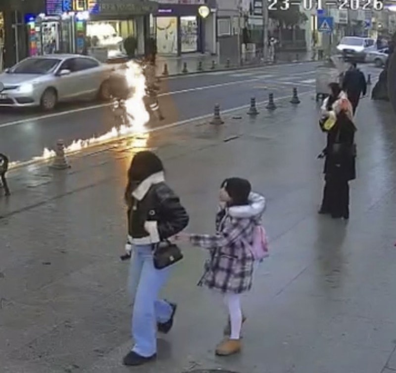 Olay anına tanıklık eden esnaf Burak Bişkin, motosikletin bir anda alev aldığını ve durumu fark eder etmez yangın tüpleriyle müdahale ettiklerini belirtti.