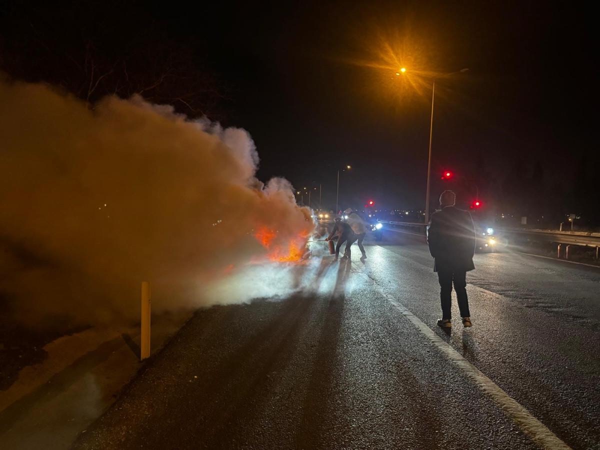 Yangını fark eden N.G., hızla aracını durdurarak dışarı çıktı ve itfaiye ekiplerine haber verdi.