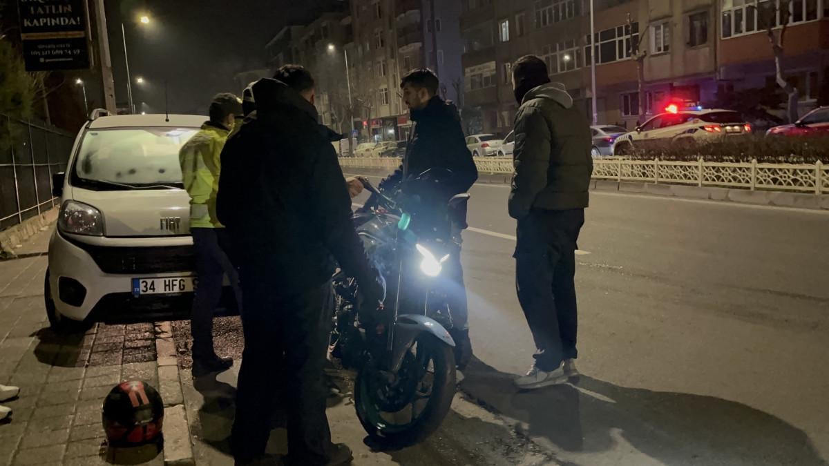 Aniden direksiyon hakimiyetini kaybeden sürücü, motoruyla beraber yolda savruldu.