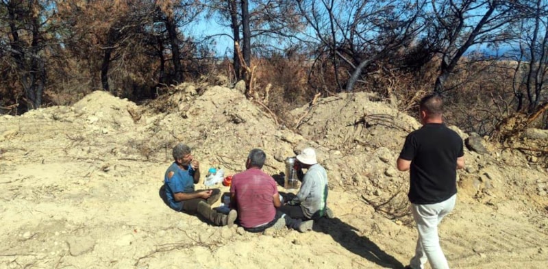 Ülkemizin her yerinden buradaki çalışmaya, temizliği yapmaya bakanlığımızın davet ettiği kişiler çalışıyor. Bizler muhtarız; halk önce bizlere taleplerini iletiyorlar, bizler de ilgili şeflik ve müdürlüklere müracaatlarımızı iletiyoruz. Şu an yanan alan için 40, 50 bin dönüm deniyor bizim en büyük ormanımız buydu o da yandı bitti." diye konuştu.