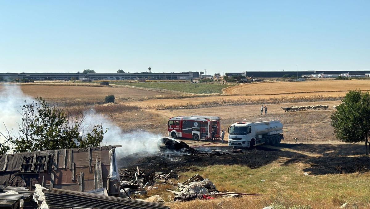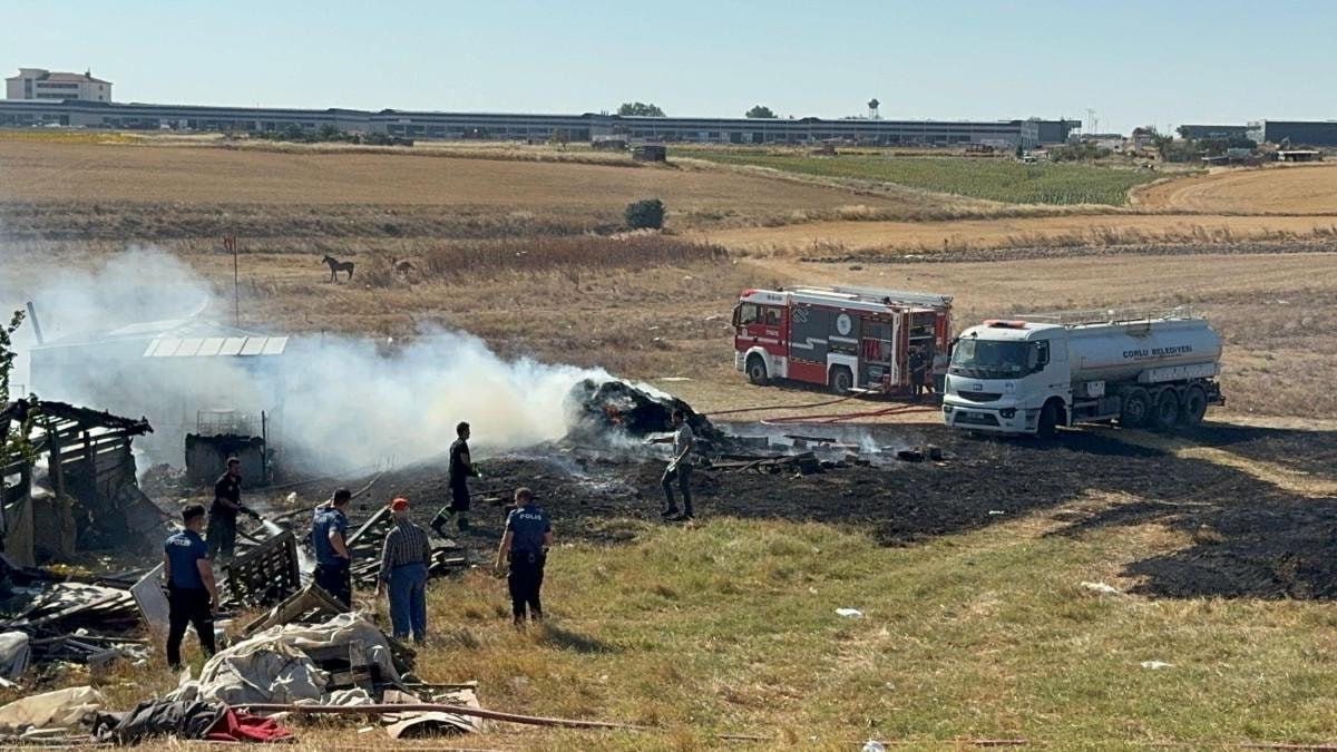 Çorlu'nun Cumhuriyet Mahallesi'nde bulunan bir hayvan çiftliğinin atıklarının bulunduğu bölgede, akşam saatlerinde yangın çıktı.