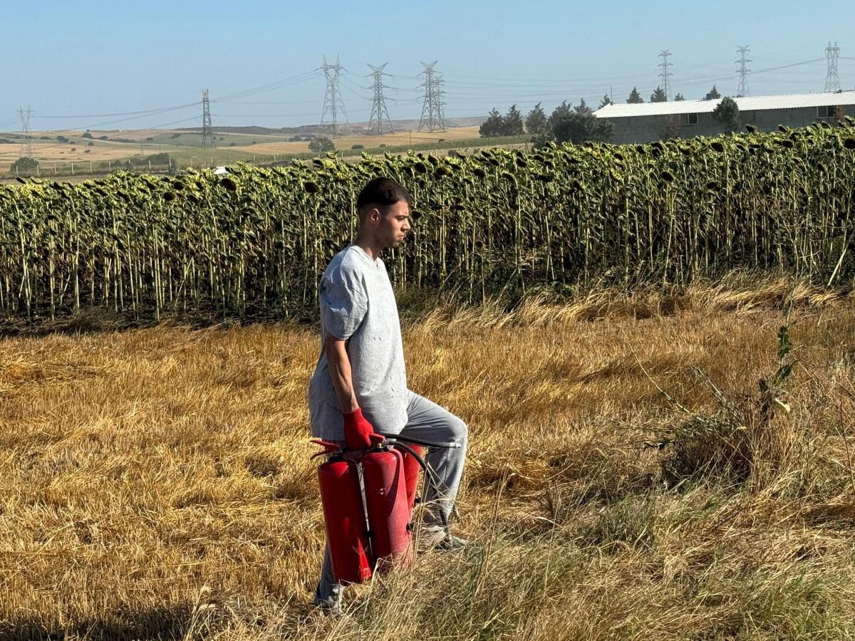 Henüz belirlenemeyen bir nedenle çıkan yangında alevler rüzgarın da etkisiyle kısa sürede büyüdü ve buğday tarlasına sıçradı.