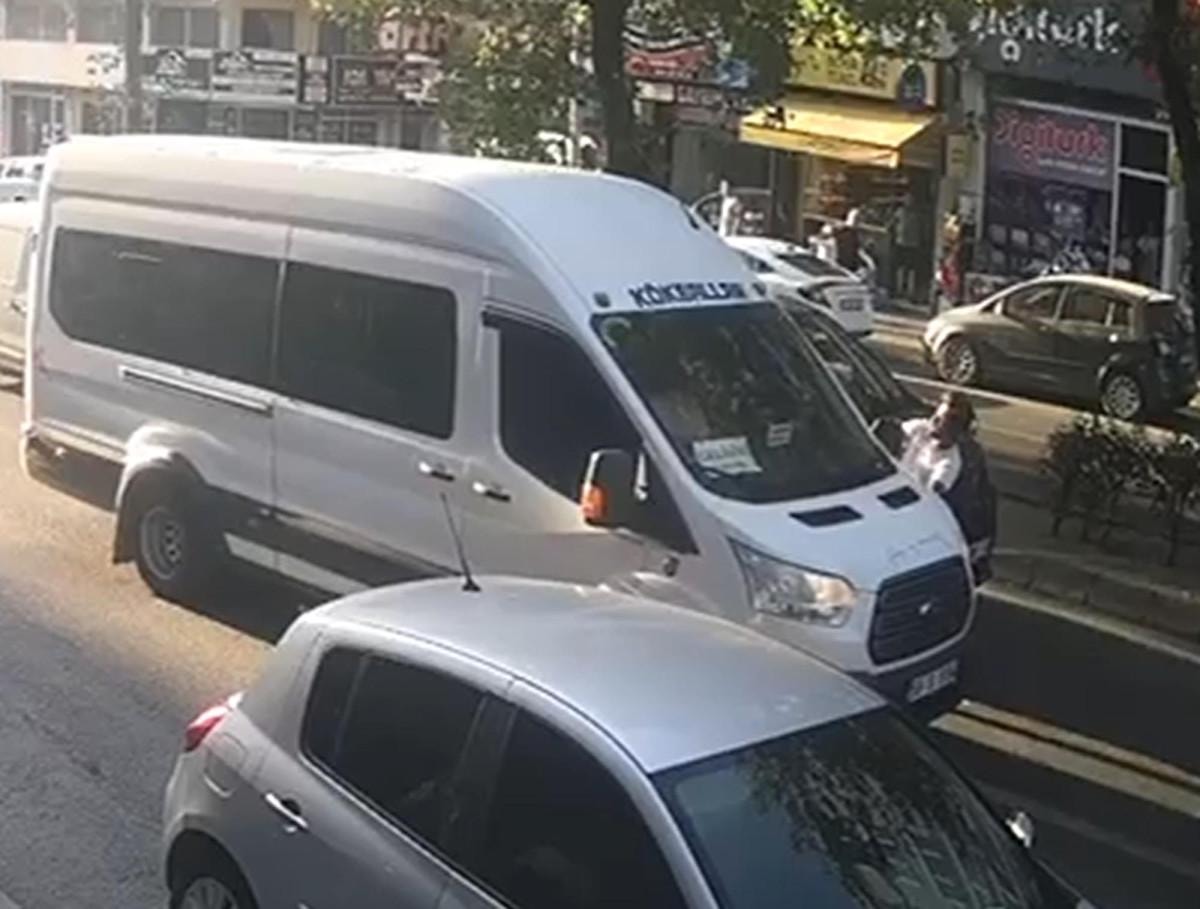 Bunun üzerine motosikletten inen Şaban Y., aracın yan aynasına vurdu ardından sepetten aldığı nacakla minibüsün yan camına zarar verdi.