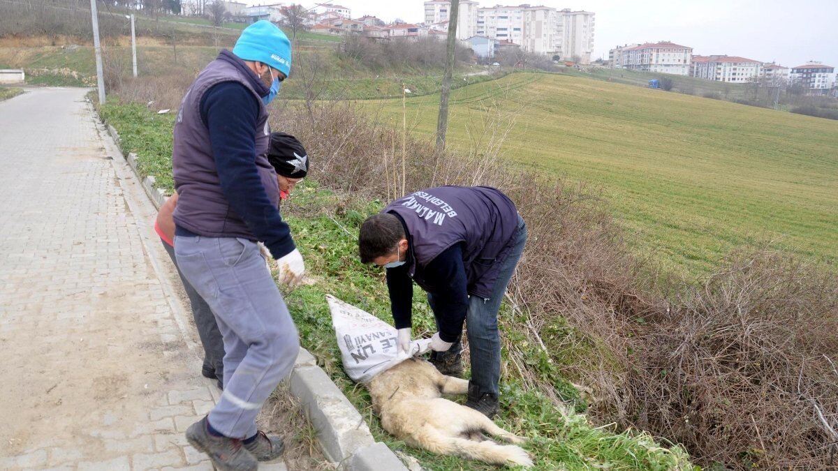 Çuvaldan çıkan köpek kuyruğunu gören 3 genç, durumu Malkara Belediyesi veteriner ekiplerine bildirdi.