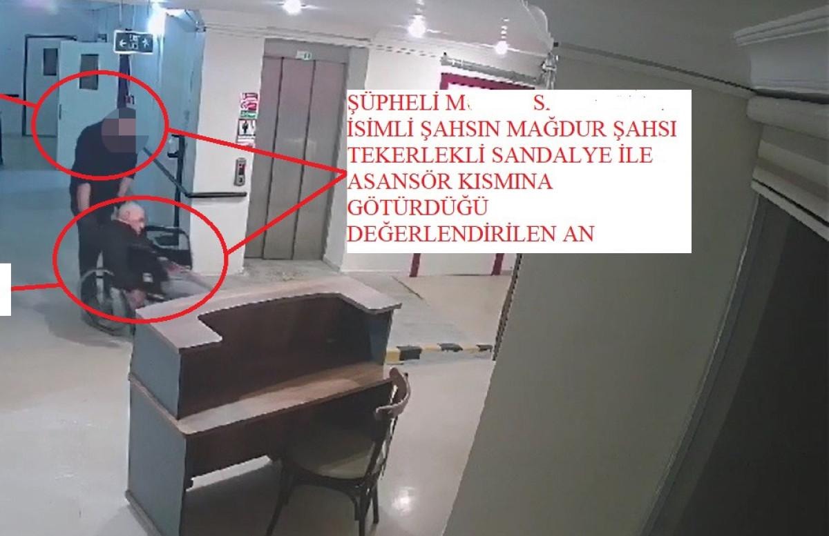 Güvenlik kamerası görüntülerinde zor kullanmaya çalışan kurum personeli M.C.B. ve M.S.'nin yaşlı adamın odasına girerek bir süre içeride kaldığı görüldü. Güvenlik kamerasının görmediği odaya sokulan yaşlı adamın o sırada darp edildiği iddia edilirken, uzun bir süre sonra personelden M.S.'nin Avni Kılıçaslan'ı tekerlekli sandalyede baygın halde içeriden çıkardığı gözlendi.