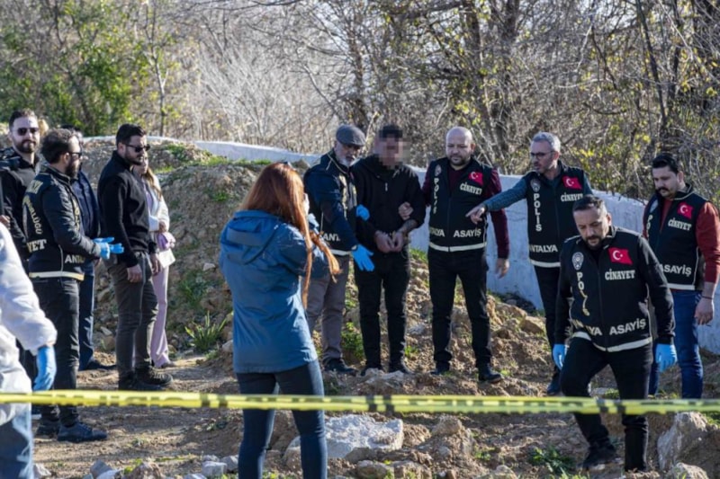 Şüpheli, yer göstermesi için Antalya İl Emniyet Müdürlüğü Asayiş Şube Müdürlüğü Cinayet Büro Amirliği ekipleri tarafından cesedin gömüldüğü Aksu ilçesi Kundu Mahallesi Sahil Caddesi'ndeki boş araziye götürüldü.