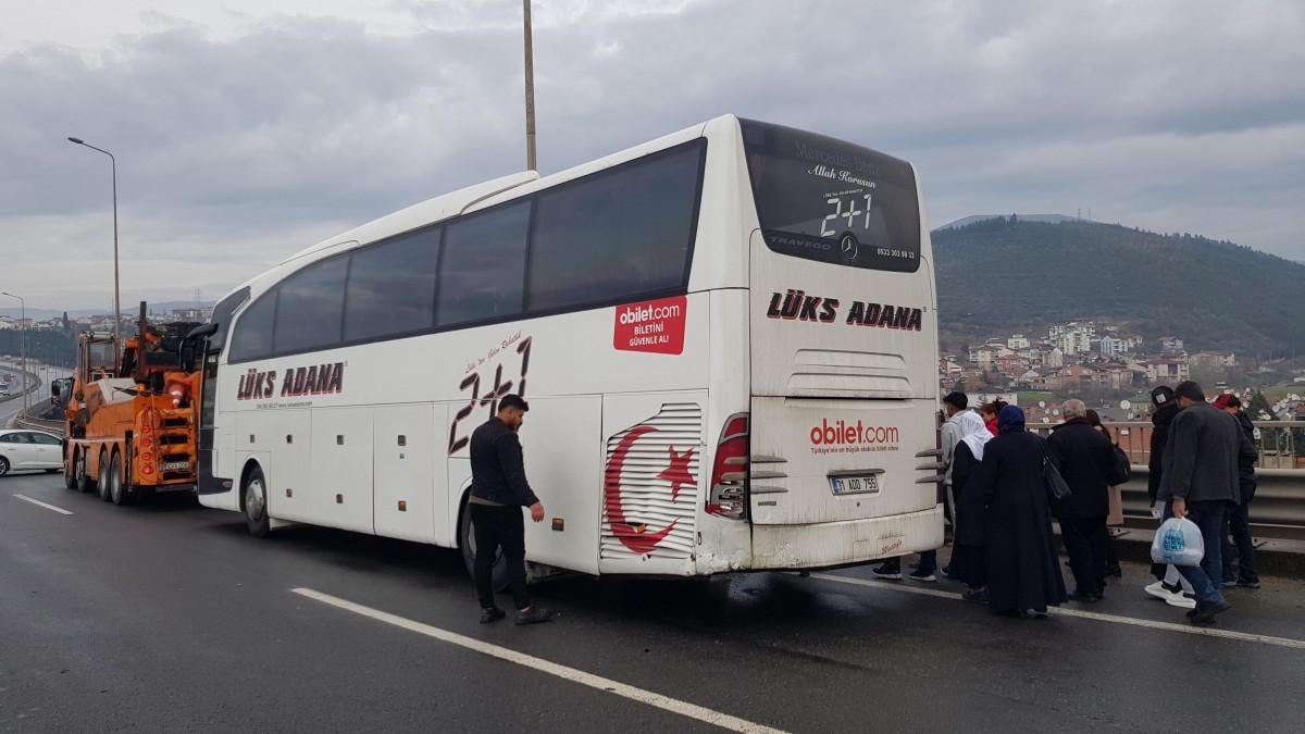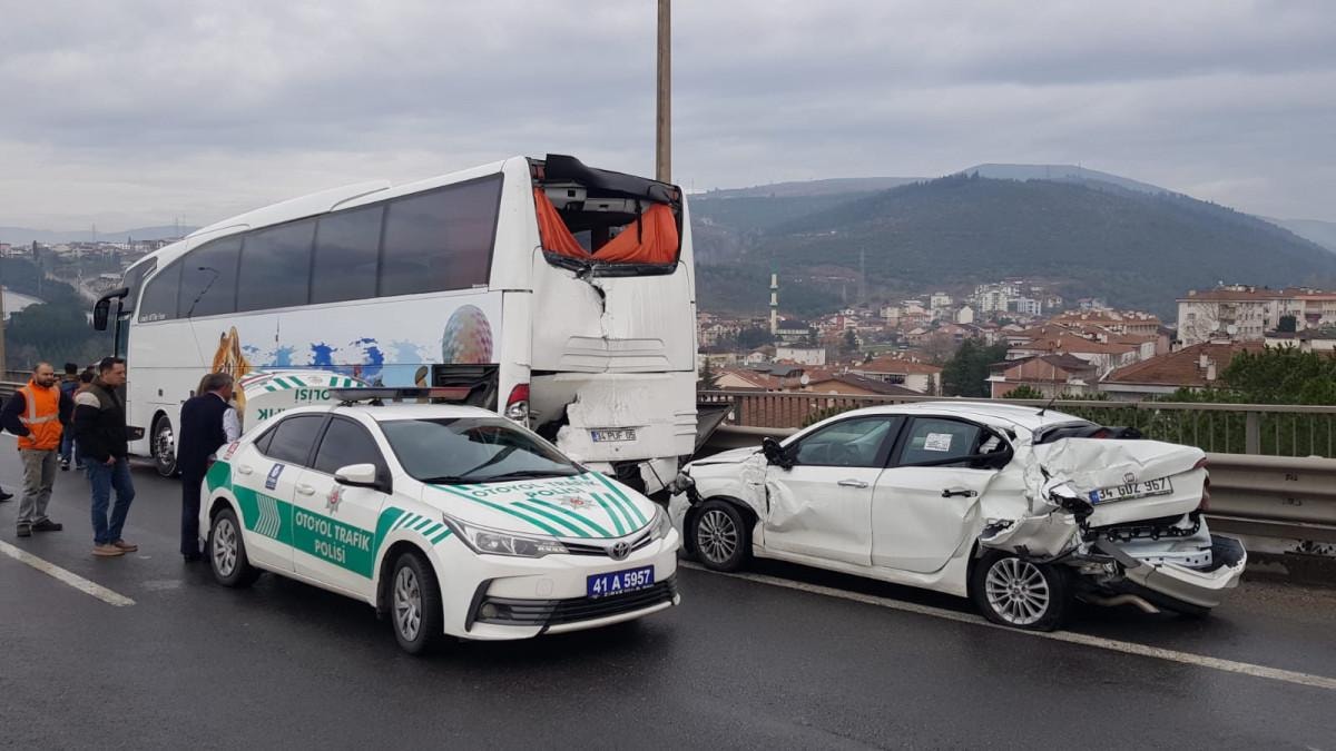 TEM Otoyolu Mersincik mevkisinde bir otomobil, saat 10.30 sıralarında önündeki yolcu otobüsüne çarptı.