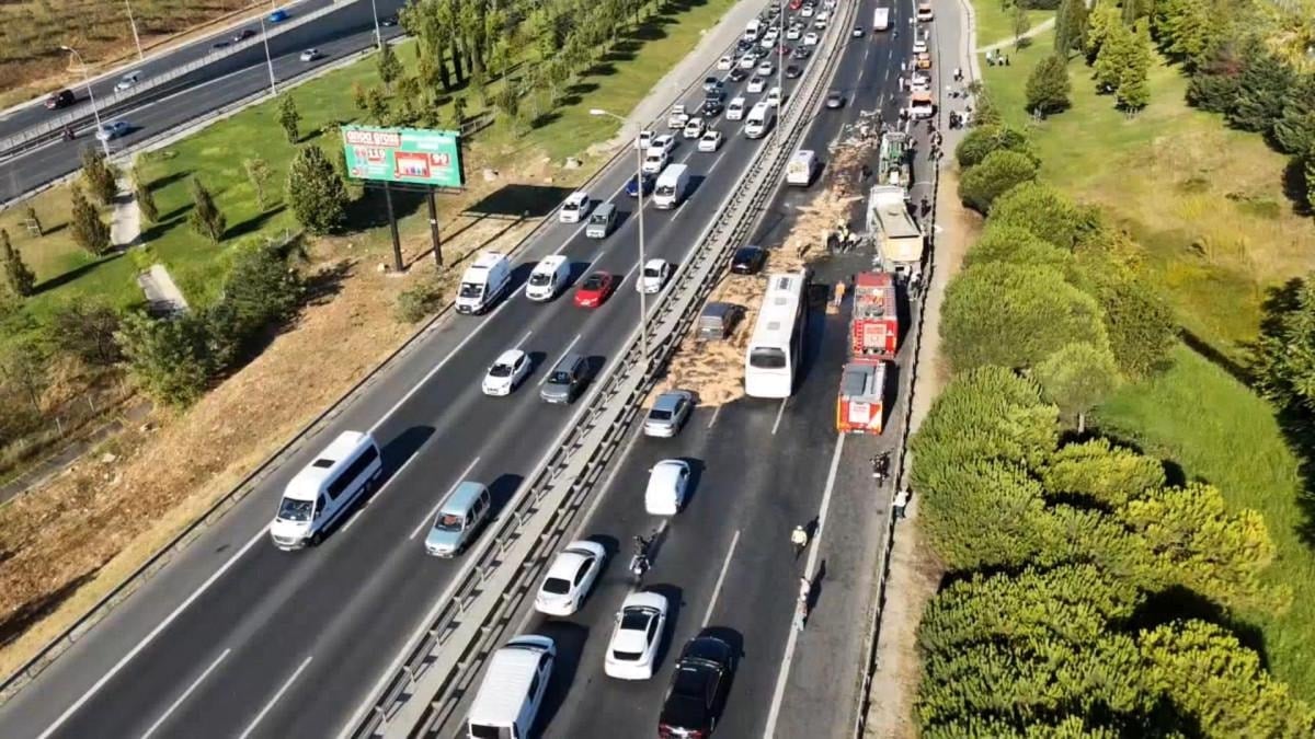 Ekiplerin yolu açma çalışmaları devam ederken, trafik Edirne istikametinde tek şeritten kontrollü olarak sağlanıyor.