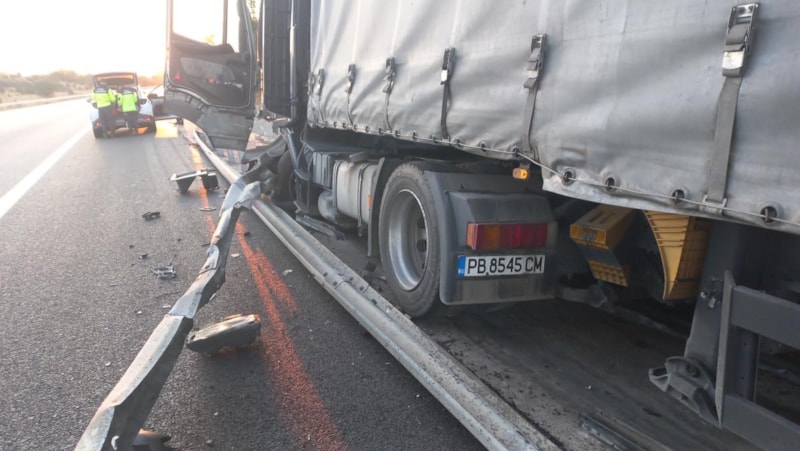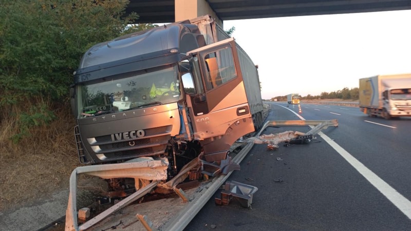 Edirne-İstanbul TEM Otoyolu’nda, Bulgaristan plakalı bir tır bariyerlere çarptı.