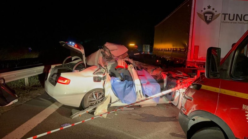 TEM Otoyolu'nun Bolu geçişinde tıra arkadan çarpan otomobil kağıt gibi ezildi, kazada 2 kişi hayatını kaybetti. Kazada annesini kaybeden sürücü, "Ben nasıl yaşayacağım şimdi" dedi.