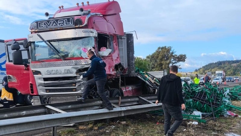 TEM Otoyolu Bolu Batı Gişeleri’nde meydana gelen kazada, kontrolden çıkan tır bariyerlere çarptı. Kazada yaralanan sürücü hastaneye kaldırılırken, yola saçılan demir profiller nedeniyle trafik bir süre aksadı.