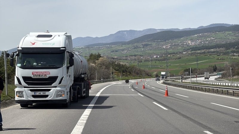 Bolu geçişinde TEM Otoyolu’nda seyir halindeki bir tırdan kopan lastik, arkadan gelen kamyonun altına girerek tehlikeli anlara neden oldu. Kazada can kaybı ya da yaralanma yaşanmadı.