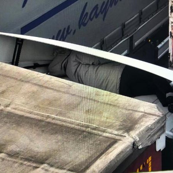 Sarp Gümrük Muhafaza Kaçakçılık ve İstihbarat Müdürlüğü ekipleri, Türkiye'ye giriş yapmak üzere Sarp Gümrük Sahası'na gelen M.K.'nin kullandığı 81 ABC 477 plakalı tırda, kamera sistemleriyle yapılan rutin saha kontrolü sırasında çekici ile rüzgarlık arasında gizlenen kişiyi tespit etti.