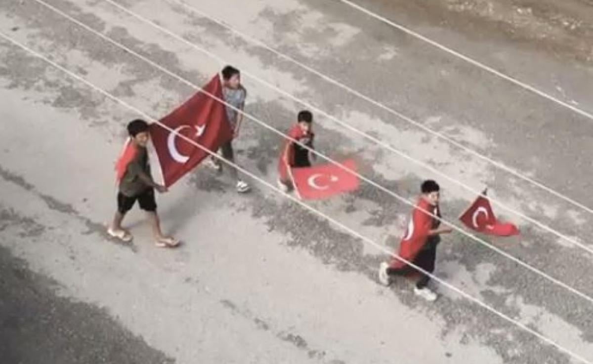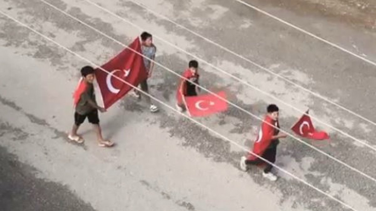 Saat 15.00 sıralarında sokak sokak gezen çocuklardan 2’si Türk bayrağı açtı.