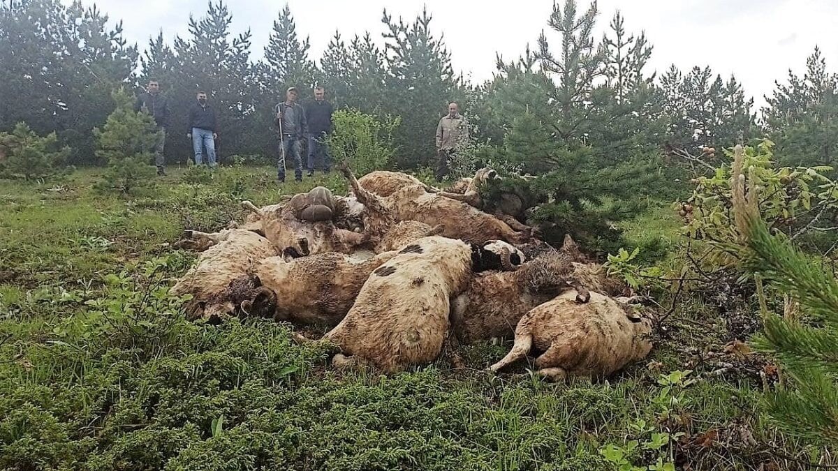 Yaralı olan 17 küçükbaş kesildi. Telef olanlar ise bir traktöre yüklenerek ormanlık alana bırakıldı.