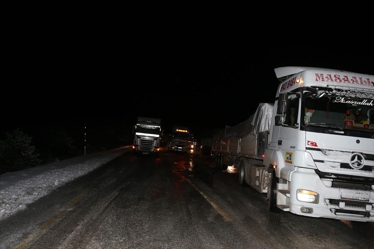 Çamlıbel Geçidi yakınlarında buzlanma dolayısıyla çok sayıda tır ve çekici yolda kaldı, bir süre trafik kontrollü sağlandı.