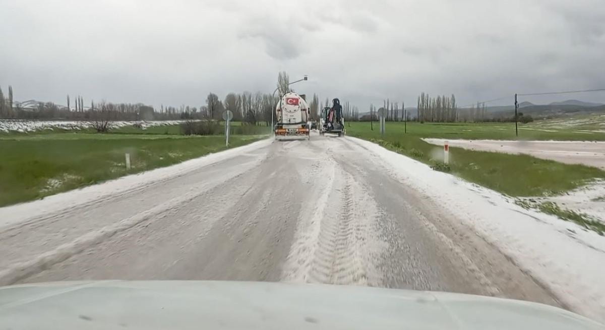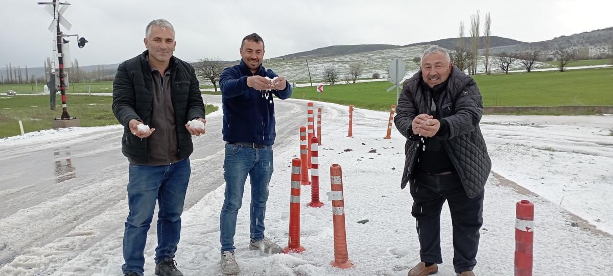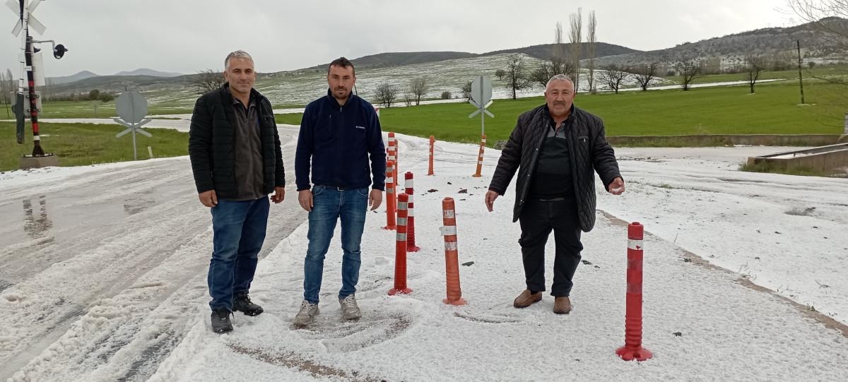 Dolu yağışının ardından ekili tarım arazileri beyaz örtü ile kaplandı.
