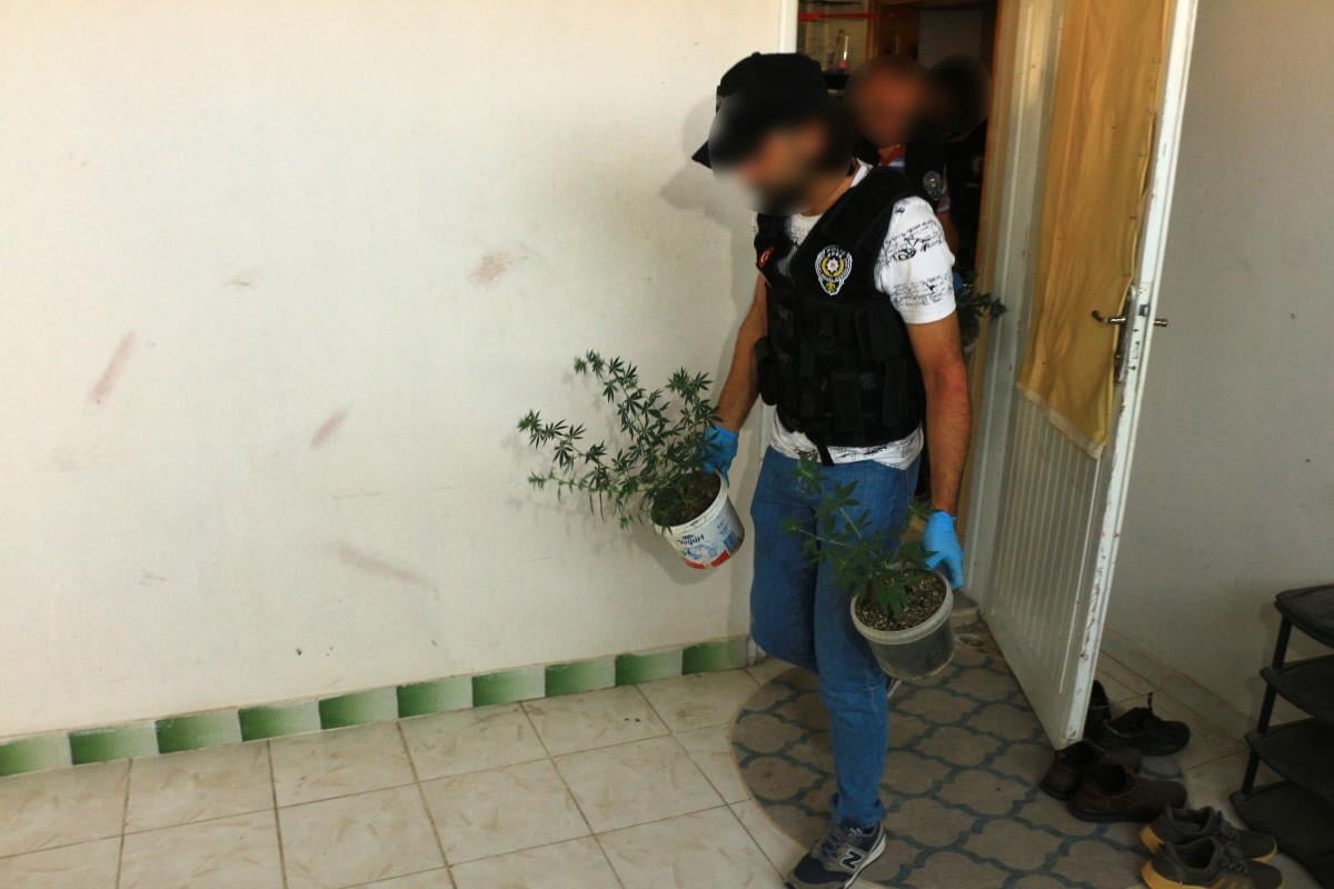 Polis ekiplerinin evde yaptığı arama çalışmalarında, kurutulmuş 600 gram esrar, saksılarda yetiştirilen 23 kök Hint keneviri, hassas terazi, termometre ve ışıklandırma sistemi ele geçirildi.