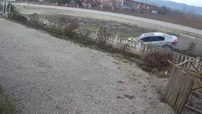 Tokat'ta bir fabrikanın bahçesine devrilen otomobilin sürücüsünün yaşamını yitirdiği kaza kameraya yansıdı.