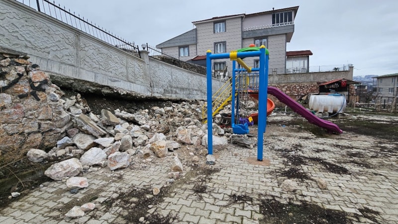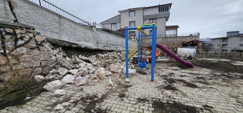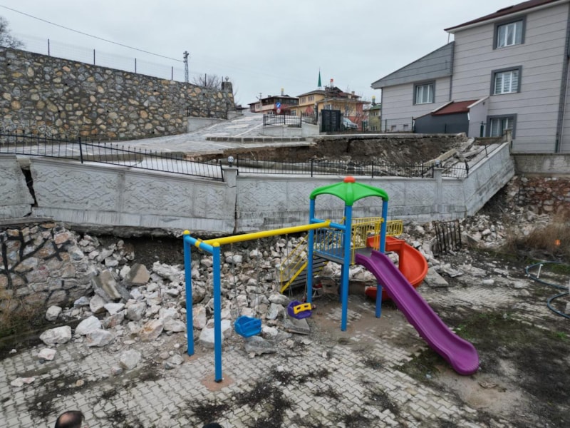 Kaşıkçıbağları Mahallesi’nde bulunan bir sitenin istinat duvarı, sitenin çocuk oyun parkına çöktü. Parkta oyun oynayan çocuğun bulunmaması olası faciayı önledi.