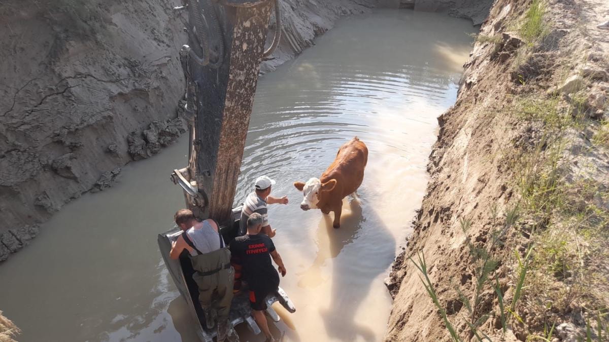 MAHSUR KALAN İNEKLER, KEPÇE İLE ÇIKARILDI