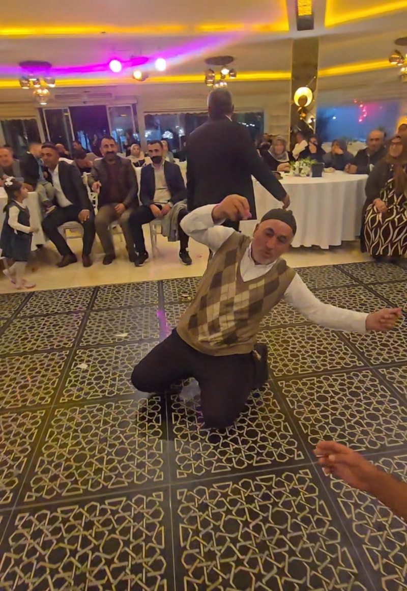 Kent merkezinde düzenlen bir düğünde, ileri yaşlarına rağmen halay meydanını şenlendiren 'ihtiyar delikanlılar', sergiledikleri neşeli oyunlarla düğüne damga vurgu.