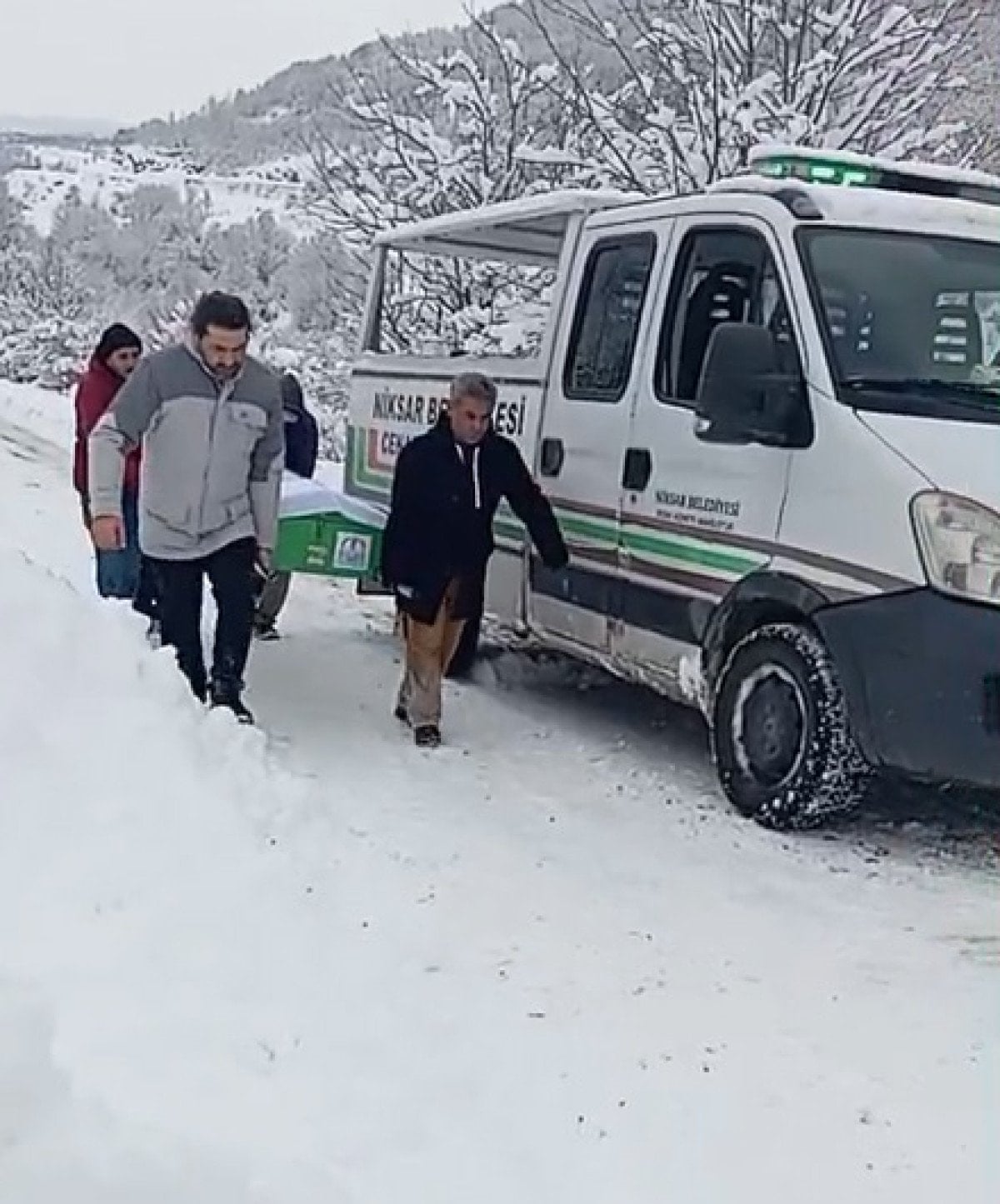 - Niksar'da vefat eden Cafer Öztürk'ün cenazesi, kar nedeniyle kapalı köy yolunda kepçe ile taşındı.