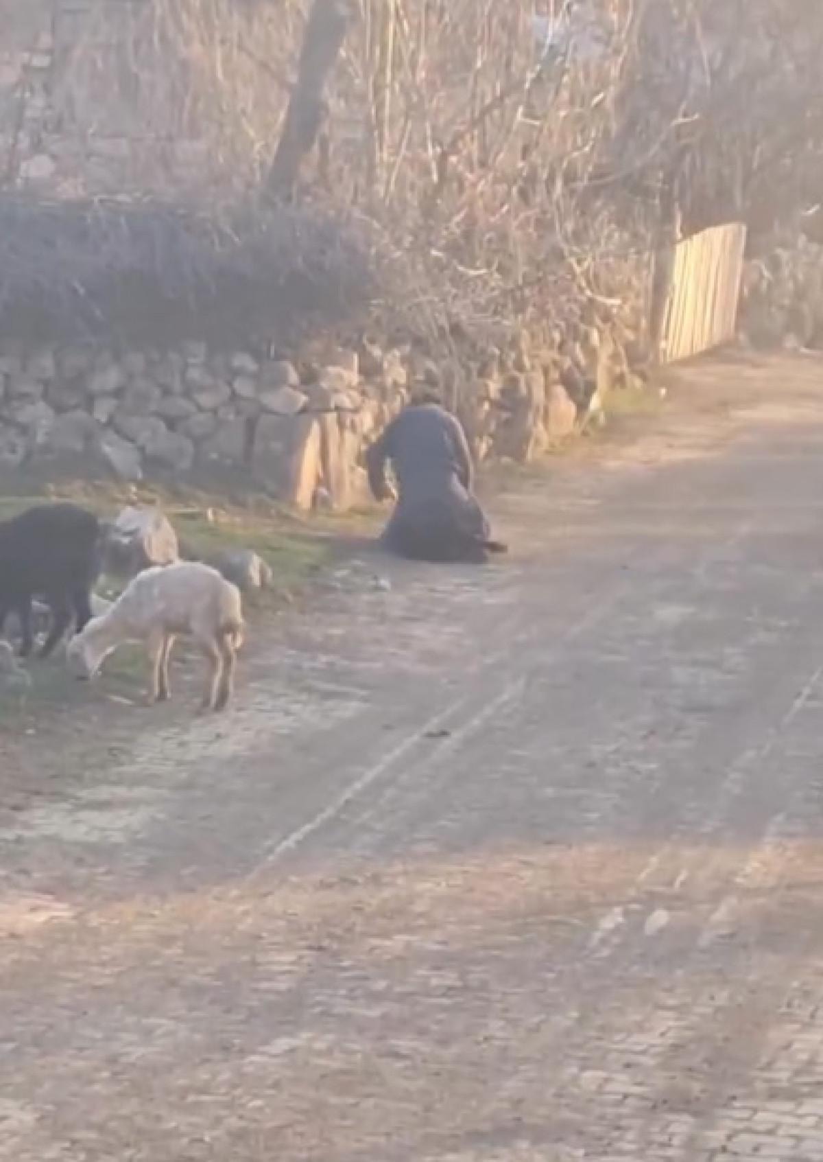 Görüntüde A.A.'nın, koyunun üzerine çıkıp vurduğu görüldü.