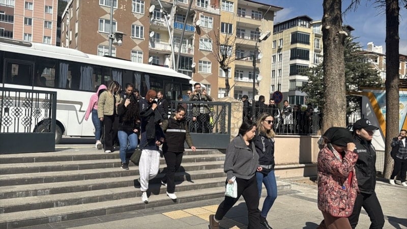 Operasyonda gözaltına alınan 64 şüpheli, Tokat'a getirildi.