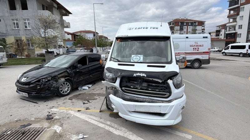 Kazada servis ve otomobil sürücüleri yara almazken, minibüste bulunan 10 öğrenci hafif şekilde yaralandı.