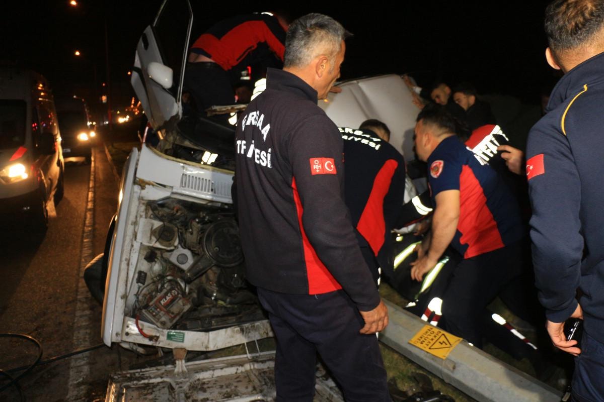Hurdaya dönen otomobilin sürücüsü ile yanındaki Sinan Güler araçta sıkıştı.