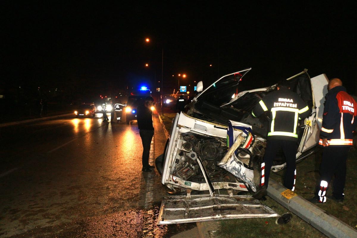 Ahmet Tiryaki yönetimindeki otomobil, refüjdeki aydınlatma direğine çarptı.