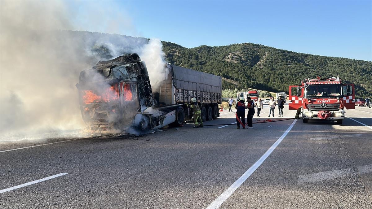 Yangın nedeniyle kapanan yolda kontrollü geçişle trafik akışı sağlandı.