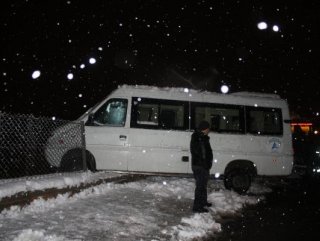 Organize Sanayi Bölgesinden 60 S 0028 plakalı boş servis minibüsü ile evine gitmek için hareket eden sürücü Ahmet Kerçek, Şahin Tepesi yakınlarında rahatsızlanarak direksiyon hakimiyetini kaybetti. Kontrolden çıkan minibüs, karlı zeminde kayarak yol kenarındaki istinat duvarı üzerindeki tellere takıldı.