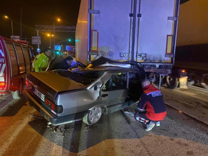 Tokat'ın Erbaa ilçesinde kırmızı ışık nedeniyle yavaşlayan Abdulvahap O. (48) idaresindeki tıra arkadan gelen Kadir D. (21) yönetimindeki otomobil ok gibi saplandı.