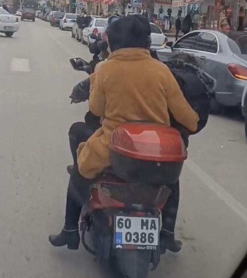 Özellikle bir motosikletin arkasında bulunan kadının kucağında bir çocuğun bulunması, tehlikenin boyutunu daha da artırdı.
