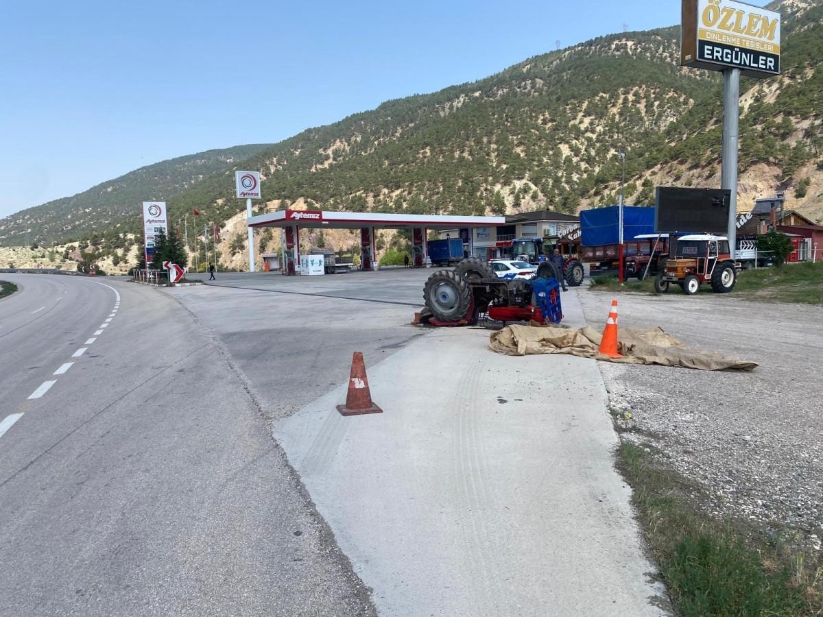 Tokat'ın Reşadiye ilçesine bağlı D-100 karayolunda 49 yaşındaki A.Ö. idaresindeki traktör, Koyulhisar istikametinden Reşadiye istikametine seyir halindeyken yol kenarındaki bir akaryakıt istasyonuna girmek isteyen sürücünün direksiyon hakimiyetini kaybetmesi sonucu devrilerek takla attı.