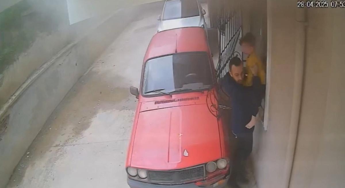 O anlar apartmanın güvenlik kamerasına da yansıdı.