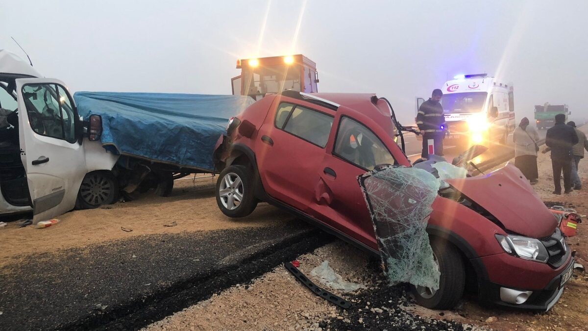 Yoğun sis nedeniyle Halit Özalpler yönetimindeki okul servisi de kaza yapan traktöre arkadan çarptı.