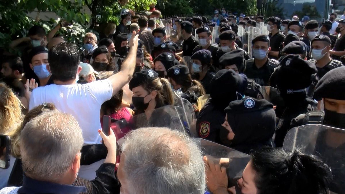 Bunun üzerine polis, kalabalığa müdahalede bulundu. Bu sırada arbede yaşandı.
