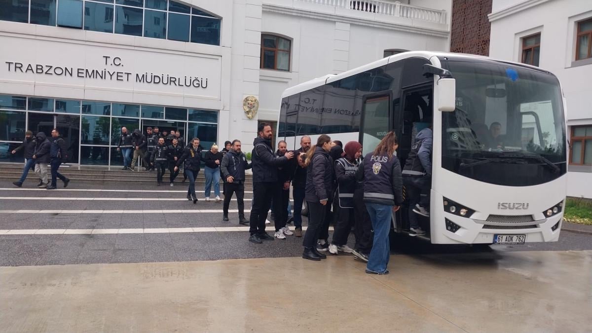 Operasyonda gözaltına alınan şüphelilerden 25'i, Trabzon İl Emniyet Müdürlüğü'nde tamamlanan sorguları sonrası adliyeye sevk edildi.