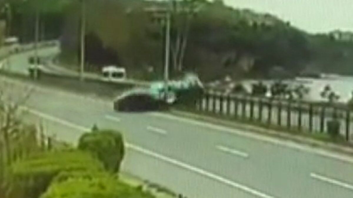 Öte yandan kaza anı iş yerinin güvenlik kamerasına yansıdı.