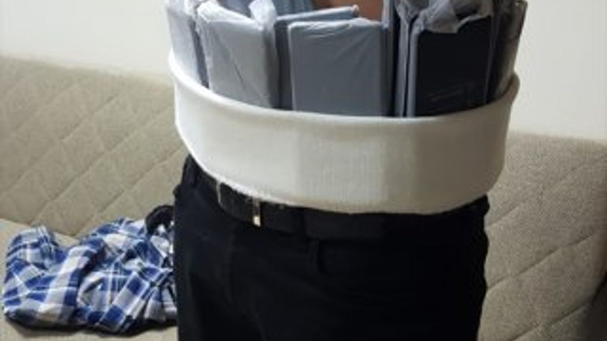 Şüphelilerden birinin beline sarılı korseye gizlenmiş 31, diğerinde ise x-ray cihazına yakalanmaması için özel tasarlanan atletin ceplerine yerleştirilmiş 55 gümrük kaçağı cep telefonu ele geçirildi.