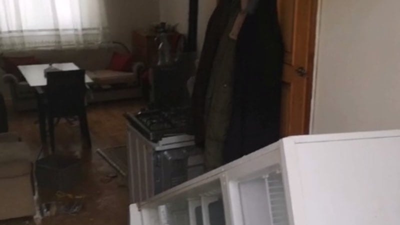 Görüntülerde; ayının kırdığı pencereden içeri girerek zarar verdiği eşyalar ve ayak izleri yer aldı.